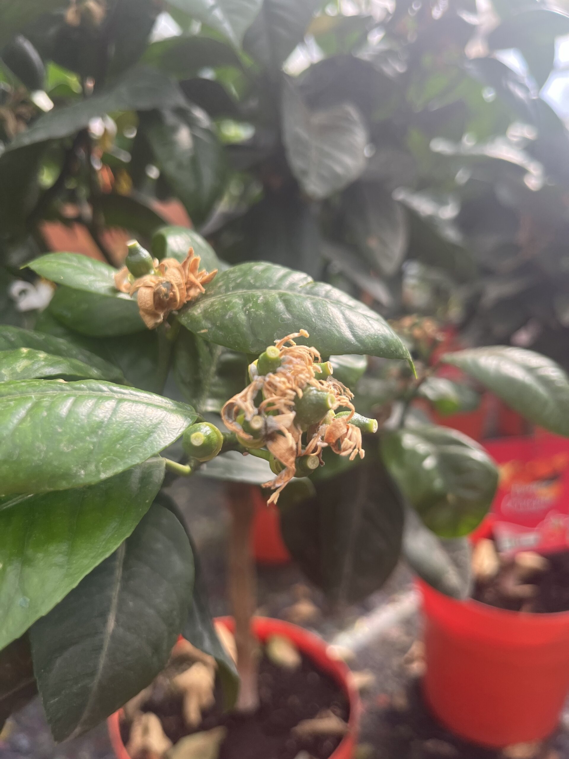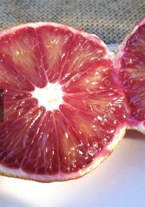 Denna roliga citrusträd, är en hybrid mellan en Meyer Citron och en Blod Apelsin.